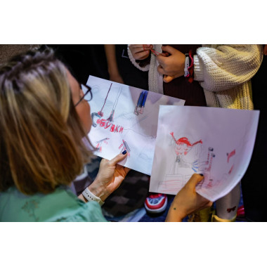 – Сакав да ја доловам замислата на Оливера, но, како и секогаш, тоа што го цртам јас и крајниот ефект на илустрацијата е една моја приказна што тече паралелно со текстот (или сценариото, во случајов), го надополнува, го обвиткува, скршнува од него, отвора нови нишки на интерпретацијата. Разликата и најголемиот предизвик во случајов беше знаењето дека на крајот читателот ќе ја види само илустрацијата и таа, од една страна, треба да ја претстави идејата, но да не биде еднозначна и да отвори можност читателот сам да ја гради приказната, а ликовите и мотивите да го одведат по сосема друг пат, до сосема други завршетоци и поенти – рече таа.