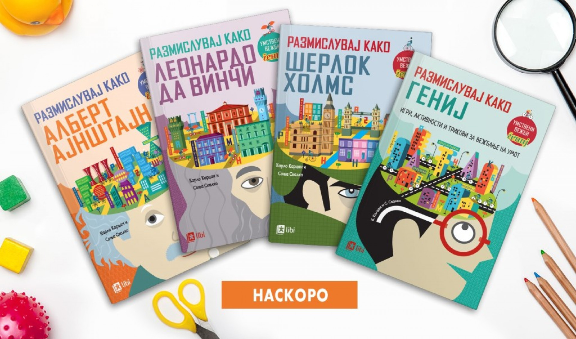 Серијалот наскоро ќе излезе од печат во издание на „Либи“, дел од „Арс Ламина – публикации“. Во него се четири книги со умствени вежби: „Размислувај како гениј – логички игри“, „Размислувај како Шерлок Холмс – логика и меморија“, „Размислувај како Леонардо да Винчи – љубопитност, техника и креативност“ и „Размислувај како Алберт Ајнштајн – храброст, истражување, научно размислување“. Книгите се добра вежба за мозокот за секоја возраст, а во нивната основа е дека се учи преку игра.